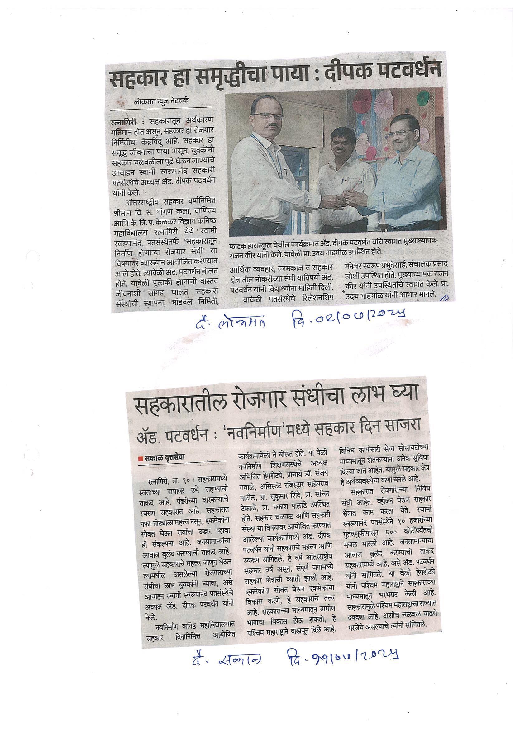 सहकार चळवळ परिचय व सहकारी संस्था माहिती विविध कॉलेज मधील युवांपर्यंत पोहोचवण्याचा उपक्रम